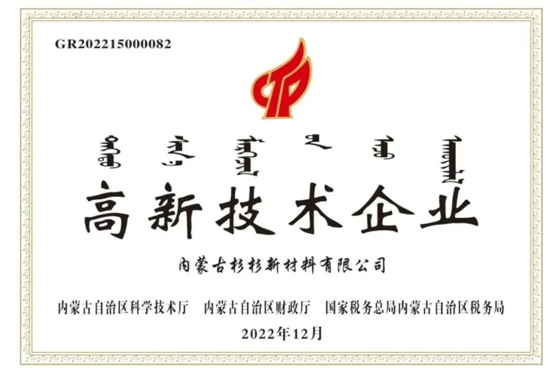 近期,杉杉科技青山工廠(內(nèi)蒙古杉杉科技有限公司)和九原工廠(內(nèi)蒙古杉杉新材料有限公司)通過嚴(yán)格評(píng)審標(biāo)準(zhǔn),分別獲得內(nèi)蒙古自治區(qū)“專精特新”中小企業(yè)認(rèn)定和高新技術(shù)企業(yè)稱號(hào)。