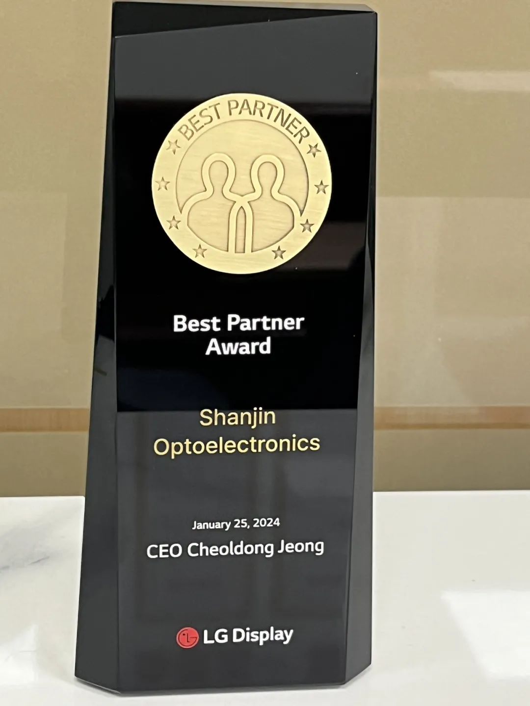 作為全球領先的顯示技術企業,LGD對其Best Partner Award的評選標準非常嚴格,要求必須在技術創新、產品質量、市場拓展等方面具有卓越表現,并能與LGD形成長期穩定的合作關系。此次獲獎,證明杉金光電憑借深厚的技術積累和卓越的服務品質,已成為LGD不可或缺的最佳合作伙伴。