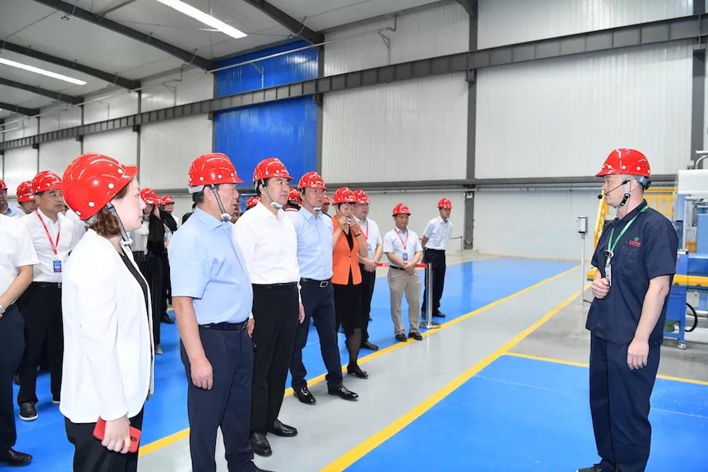 儀式結(jié)束后,現(xiàn)場嘉賓在工作人員的帶領(lǐng)下來到杉杉科技包頭生產(chǎn)車間,近距離觀摩包頭一體化基地的生產(chǎn)狀況。
